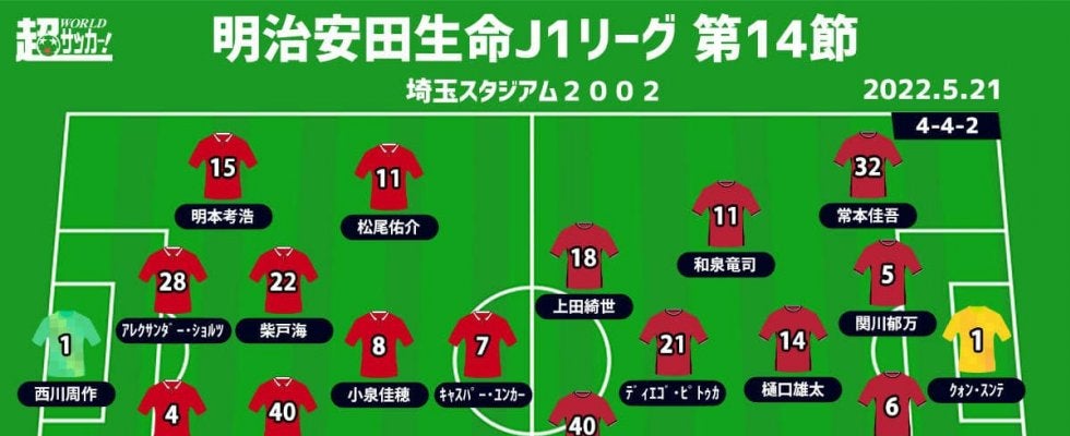 【明治安田生命J1リーグ第14節】 2022年5月21日(土) 17:00キックオフ 浦和レッズ(15位/13pt) v…