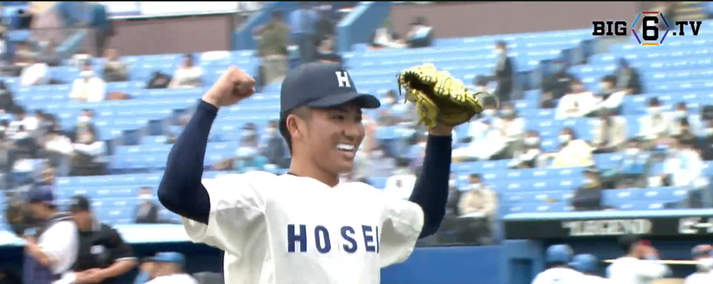初回、法大は野尻幸輝(④木更津総合)のタイムリーで2点先制。5回にも浦和博(③鳴門)の2試合連続ホームランなどで2点を追加。