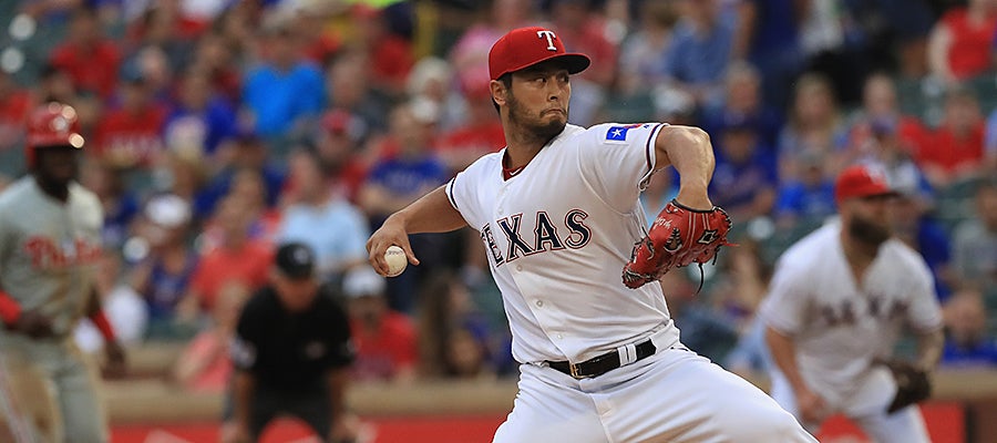 7回を投げて4安打9奪三振1失点(自責1)、要した球数は98球という効率のいいピッチングでメジャー通算50勝に到達。日本人6人目となるメジャー50勝に109試合目で到達したのは、松坂大輔の112試合を抜き、日本人最速記録となった。また、ケビン・ブラウンの115試合を抜き、レンジャーズ球団史上最速記録更新となった。