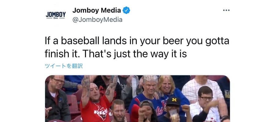 実際の一部始終を米ポッドキャストメディア「ジョムボーイ・メディア」公式ツイッターが動画で公開。文面には「もしボールがビールカップに着弾したら、それを飲み干さないといけない」などと記した。米ファンも「人生で1度はやってみたい」「これは伝統だ」「不文律のルール」「“ショット”のビール」「打者は代わりのビールを買わないと」「シンシナティのファンは面白いよね」「ゴム素材の味がするかも」などとコメントしていた。珍しい光景にシンシナティのファンは沸いたが、レッズは4-7で敗れた。(THE ANSWER編集部)