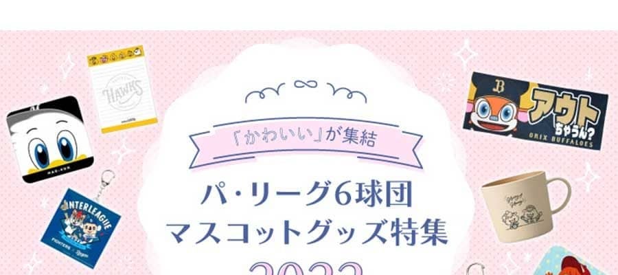 パ・リーグ6球団のグッズで、今回は「球団マスコット」に注目。各球団のお勧め商品を紹介する。セ・パ交流戦に合わせたコラボ商品の最新情報もあるので、パ・リーグ球団のファンのみならずセ・リーグ球団のファンも要チェックだ。