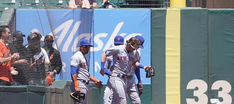 フェンスに激突し同僚に支えられるメッツのジェフ・マクニール【写真:AP】