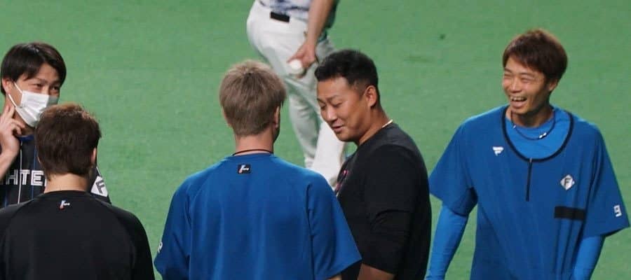 【実際の様子】試合前にハム選手たちが続々と“中田詣で”…楽しそうなひとときを過ごしたシーン