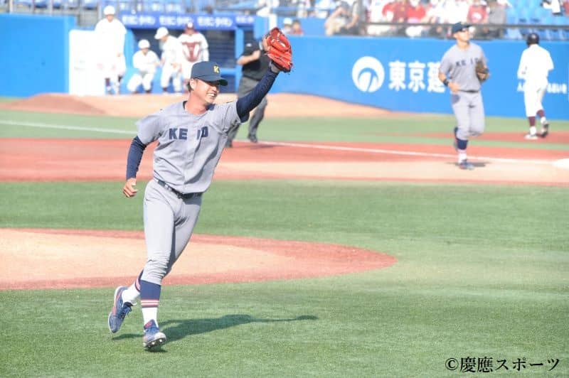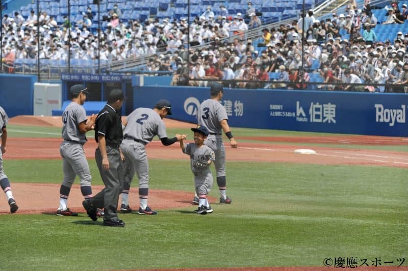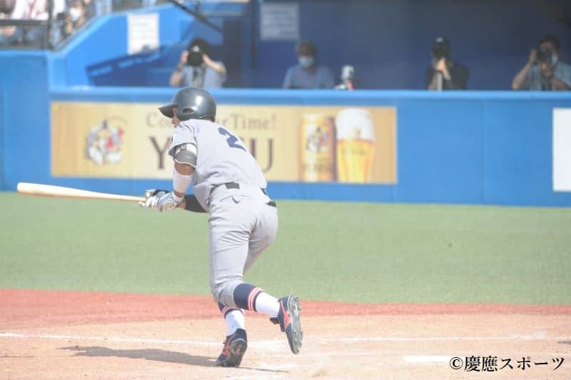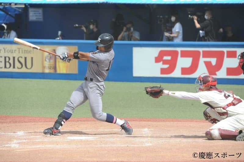 慶大本塁打:萩尾4号2ラン(1回)、下山2号ソロ(4回)