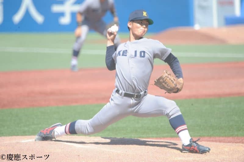 本塁打・打点でリーグトップに輝いた先発の外丸は3回、7番・三宅隆二郎(人間4・明星)に初安打を許すと、1死二塁から9番・清水大に右中間を破る適時二塁打を放たれ、同点に追いつかれる。しかしその後はツーシームとカーブを上手く使い、5回まで早大打線を3安打に封じる好投で流れを呼び込み、慶大3点リードで試合を折り返す。