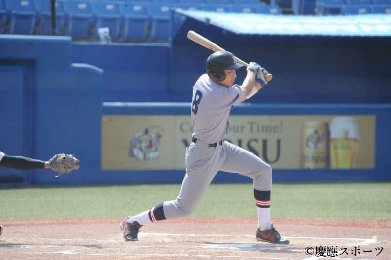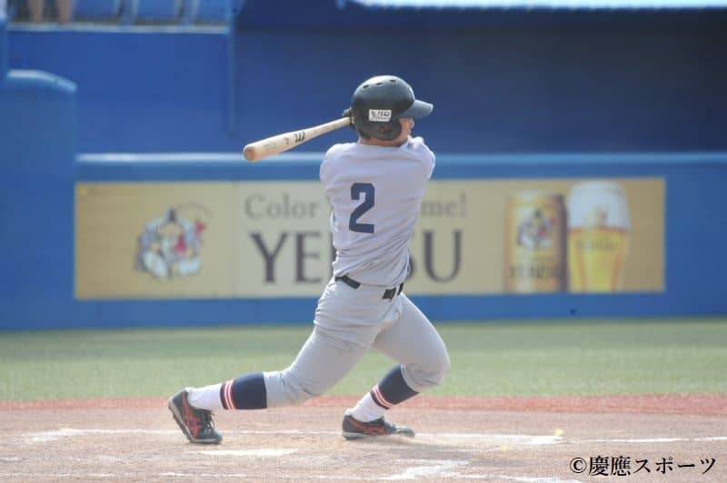 法大は4回にも吉安の犠飛で1点を追加し2点差となる。5回表、反撃したい慶大は先頭の7番・坪田が右安打を放ち、その後法大の失策と9番・齋藤快太(商2・前橋)の犠打で1死一、三塁とする。ここで1番・佐藤駿(商2・慶應)が適時打を放ち、1点差に迫る。なおも1死一、三塁の場面だったが後続が断たれ、1点ビハインドのまま後半戦に突入する。