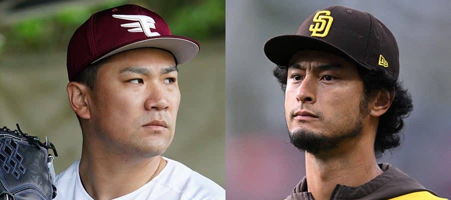 楽天・田中将大(左)とパドレス・ダルビッシュ有【写真:荒川祐史、ロイター】