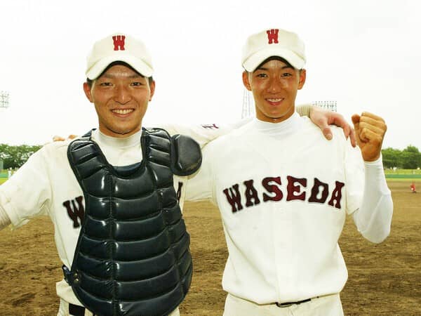2年生で早実のエースになった斎藤佑樹だったが...左は主将の武石周人