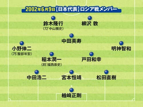 2002年日韓W杯初戦。日本代表のベルギー戦メンバー