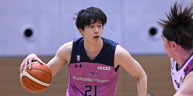 現在30歳の菅野は福島県出身で、190センチ88キロのスモールフォワード。福島工業高校、東北学院大学、仙台89ERSの練習生を経て、2014年に福島へ入団した。2018-19シーズンから三遠ネオフェニックスに2シーズン在籍したのち、2020年に福島へ復帰。2021-22レギュラーシーズンは27試合の先発を含む52試合に出場し、273得点(1試合平均5.3得点)107リバウンド(同2.1リバウンド)82アシスト(同1.6アシスト)を記録した。
