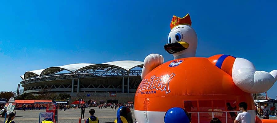 日韓W杯で3試合の会場となった“ビッグスワン”、現在はアルビレックス新潟の本拠地として使用されている【写真:宇都宮徹壱】