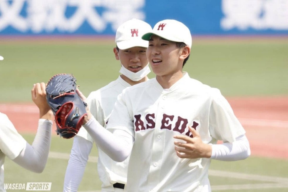 何とか反撃をしたい打線は、7回と8回にも好機をつくる。7回は、中野の中前安打と盗塁、代打反町恵真(スポ2=埼玉・早大本庄)の四球、梅村の遊撃への内野安打などで2死満塁とする。ここで文珠玄基(スポ2=神奈川・桐蔭学園)が打席に入るが、空振り三振に倒れた。8回は、この回先頭の尾瀬雄大(スポ1=東京・帝京)が遊撃手の失策で二塁まで進む。中村敢晴(スポ2=福岡・筑陽学園)が四球を選び、続く栗田(スポ2=山梨学院)が三塁線へバントを試み、それを投手が失策。無死満塁と絶好の好機が訪れる。ここで早大は代打薗部将大(教2=東京・早大学院)を送ったが、薗部の打球は浅い左飛となり、犠飛にはならず。続く中野が併殺打に倒れ、やはり得点には遠かった。7回から登板した中森は、7回は3人で切り抜けたものの、8回に連続安打で2点を失い、結局4-0で慶大に完敗した。