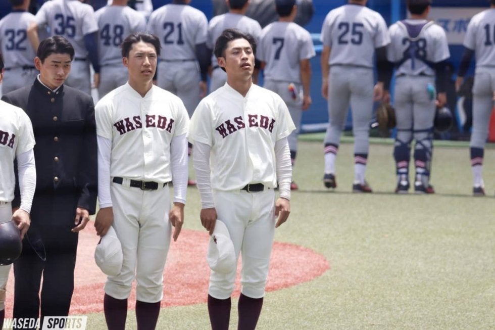 早大の先発は、春季リーグ戦でリリーフとして好投した伊藤樹。初回、先頭打者に左前安打で出塁を許すも、後続を左飛、併殺打に抑え込み、上々の立ち上がりを見せる。2回裏、坪田大郎(1年)に中前安打を許すと、暴投と捕逸が絡み1点を先制された。その後は、6回に2本の二塁打で1点を失いはしたものの、3回から6回まで毎回奪三振を記録する好投を見せ、試合をつくった。伊藤樹を援護したい打線は5回、1死から中野翔斗(人2=長野・佐久長聖)が四球で出塁すると、続く吉田瑞樹(スポ1=埼玉・浦和学院)の打球を二塁手が失策し、1死一、二塁となる。しかし、石岡泰樹(スポ2=早稲田佐賀)、梅村大和(教2=東京・早実)が凡退し、得点にはならなかった。