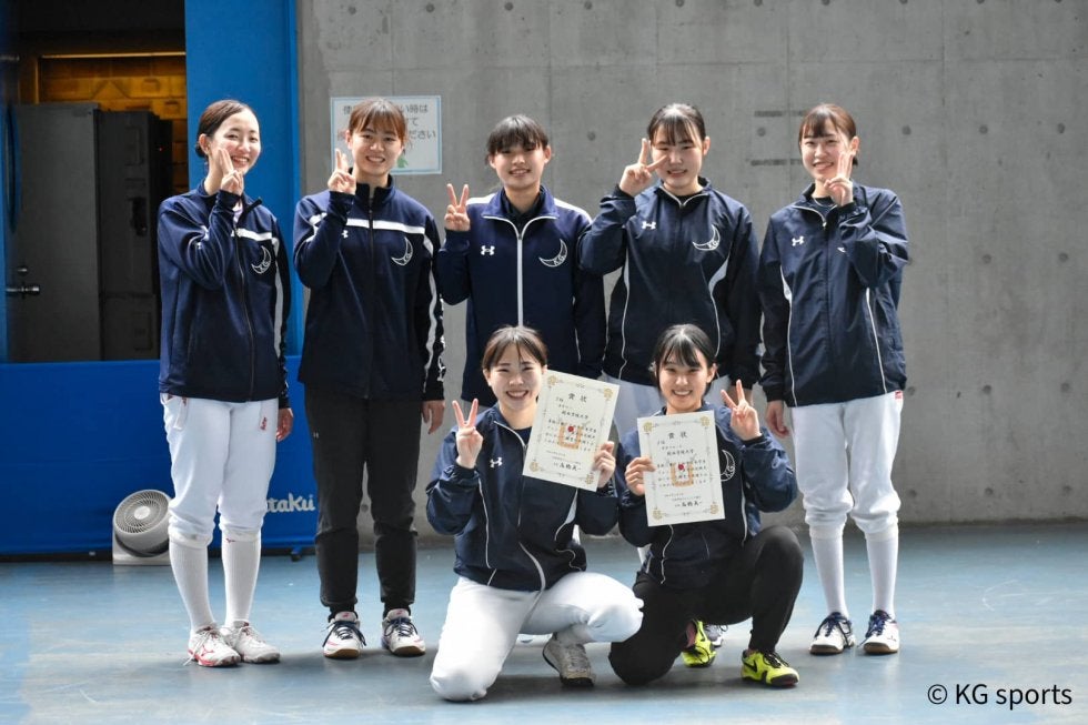 関西、関東の春季リーグ上位2チームが出場する今大会。関学は女子フルーレ、女子エペに出場した。女子フルーレは初戦、日女体大と対戦。0ー2のロースコアで1番手・清水(商4)がバトンを渡すと、2番手・津田(国2)は大健闘し7ー4に。しかし、すぐさま追いつかれ逆転を許すと、一気に相手ペースに持ち込まれた。そのまま、なす術もなく19ー45と大敗を喫した。絶対に負けられない3位決定戦では、関西リーグ2位の朝日大と対戦。1番手・津田が5ー1で繋ぐと、続く神山、清水も着実に得点を重ねた。関西覇者の意地を見せ、45ー31で勝利。今大会は3位という結果に終わった。