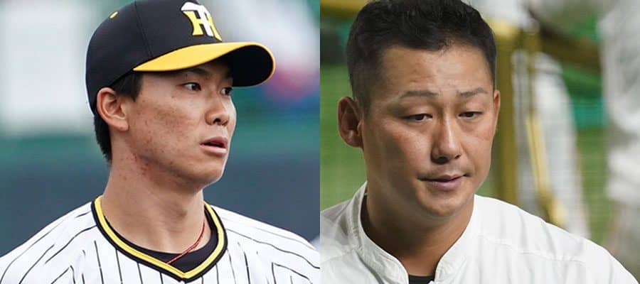阪神・湯浅京己、巨人・中田翔【写真:荒川祐史】