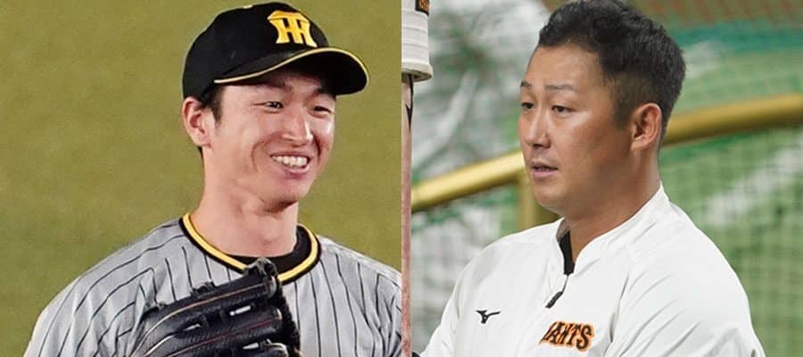 阪神・近本光司(左)、巨人・中田翔【写真:荒川祐史】