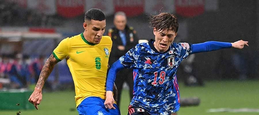 古橋はネイマールにタックルで対抗 サッカー日本代表は6日、国立競技場でブラジル代表との国際親善試合に臨み、0-1で敗れた…