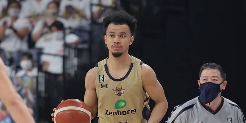 アメリカ出身の日本国籍選手で現在26歳のフリッピンは、188センチ75キロのポイントガード兼シューティングガード。2019年に千葉ジェッツでプロキャリアをスタートさせ、2021-22シーズンから琉球でプレーしており、レギュラーシーズン51試合に出場し、381得点(1試合平均7.5得点)161アシスト(同3.2アシスト)を記録。チャンピオンシップ6試合にも出場し、平均5.3得点を挙げている。