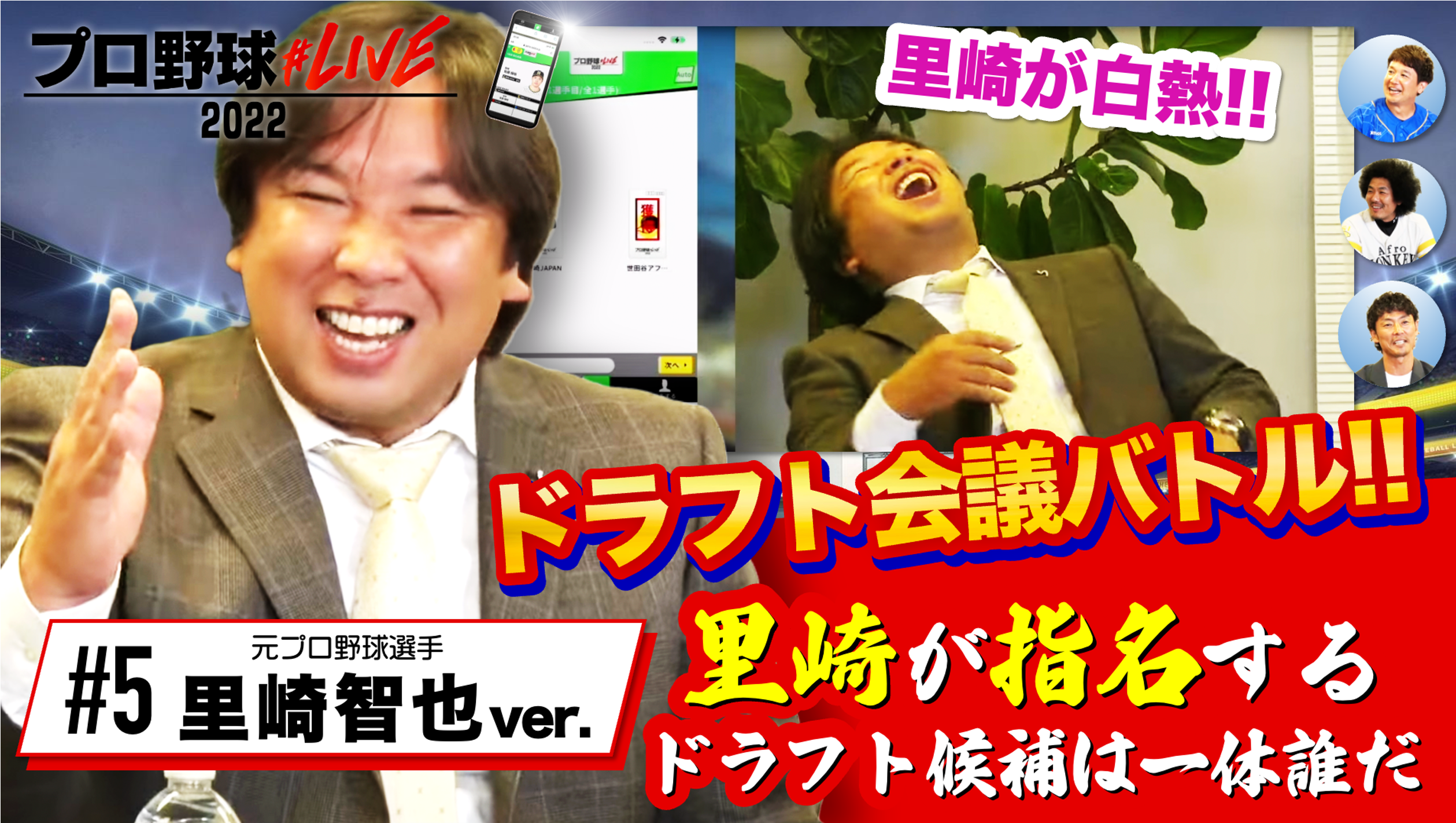 プロ野球OB&野球好きゲストが集まりプロ野球#LIVE2022「ドラフト会議バトル」をプレイ!!実際のドラフト会議同様に競合、抽選がゲームを通して繰り広げられ、