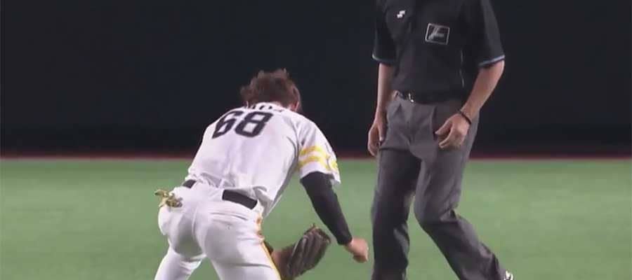 【実際の映像】場内どよめいた“美しすぎる空中キャッチ” 鷹・三森のスマートすぎる美技