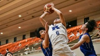 <写真・ブザービーターで勝利を決めた山際>6月9日、エディオンアリーナ大阪にて第72回西日本学生バスケットボール選手権大…