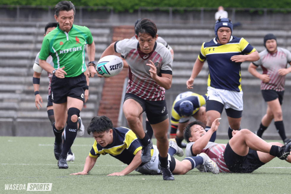 梅雨の訪れを感じさせる蒸し暑さのなか、早大Dは玉川大と対戦した。ボールキャリーで着実に前へと進み、テンポの良い攻撃を展…
