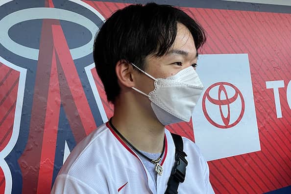 エンゼル・スタジアムに観戦に訪れたフィギュアスケート男子の鍵山優真選手【写真:盆子原浩二】