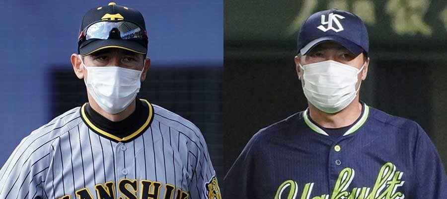 阪神・矢野燿大監督(左)とヤクルト・高津臣吾監督【写真:荒川祐史】