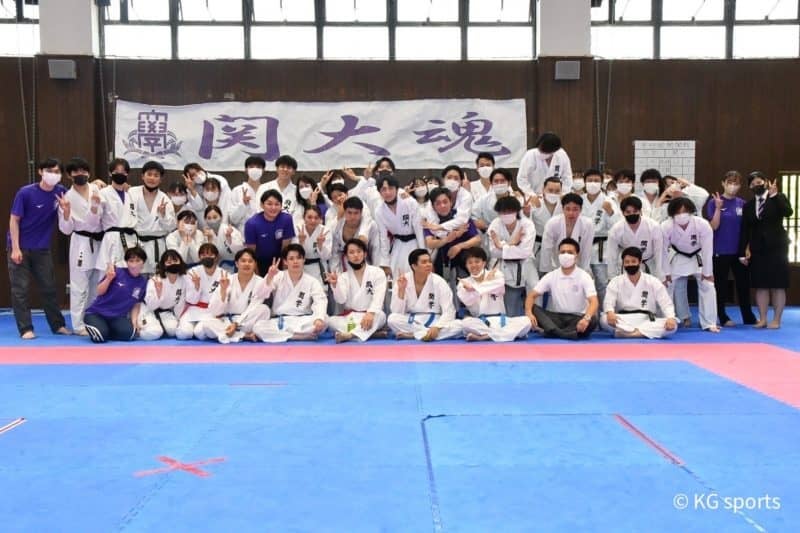 <写真・試合後、写真撮影に応じる選手たち>6月12日、関西大学千里山キャンパス凱風館にて、第45回総合関関戦が行われた。…