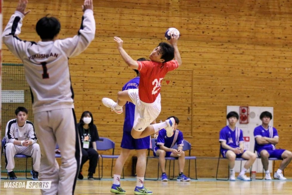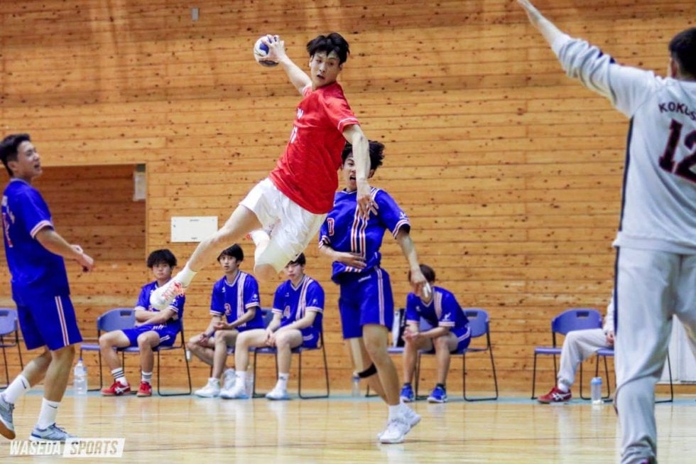 第1セットは、相手に主導権を握られた。序盤にGK井上元(教1=埼玉・大宮北)の好セーブが見られたが、直後に押し込まれ先制を許す。早大は菅原七海(社4=東京・早実)のミドルシュートや白築琢磨(文構2=東京・早実)のサイドシュートで応戦し、3-3。しかし、6分に相手の速攻が決まると、徐々に突き放された。終盤には井上のロングパスから田中奨三(創理1=東京・早大学院)がサイドシュートを決めて追いすがったが、結果的には7-13で第1セットを落とした。