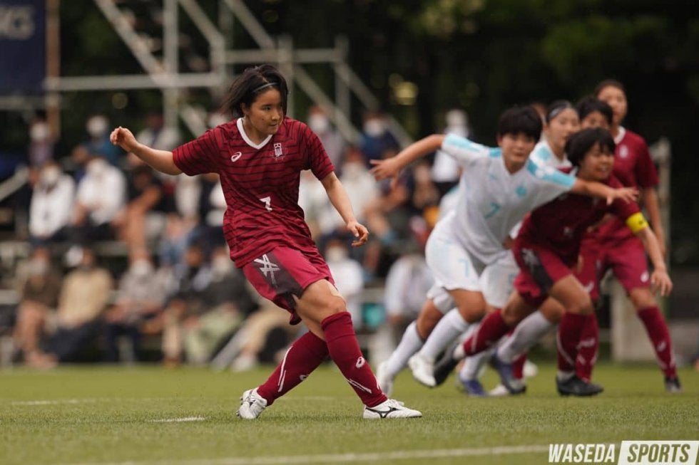 後半はMF三谷和華奈(スポ3=東京・十文字)が右サイドで躍動した45分間となった。70分に持ち前の鋭く切り込むドリブルで相手をかわし、シュート性のクロスを入れる。相手GKが弾くも走り込んでいたFW廣澤真穂(スポ4=ノジマステラ神奈川相模原ドゥーエ)が詰めてゴールに押し込んだ。そして後半アディショナルタイム、今度は独特なリズムのドリブルでDFを抜き去ると、相手がたまらずファウルで止めた。これがペナルティエリア内であったため、PKに。三谷はこれを迷わずゴール左に突き刺し、今節の躍動を自身の今季初得点で締めくくった。