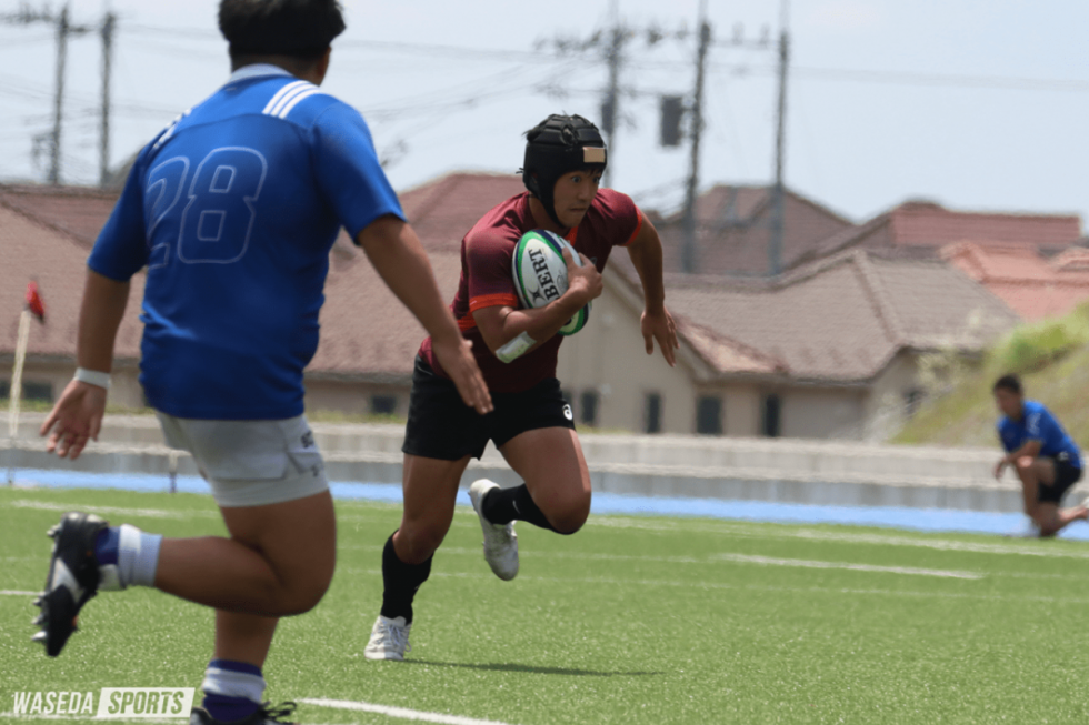 前半序盤は敵陣深くで攻撃を継続した。9分、22メートルラインでのマイボールラインアウトから素早いパスワークでNO・8鈴木風詩(社2=国学院栃木)が前へ。その後ラックからパスを受けたSO吉岡麟太朗(スポ2=東京・本郷)をアシストした金井がインゴール右隅に飛び込んだ。続く11分には、相手のハイパントから一気に敵陣22メートルラインに侵攻。早大Cの連続アタックの末、プロップ百枝樹生(スポ2=東京・国学院久我山)が空いたスペースに走り込み、トライ。その後も早大Cの追加点や日大Cの攻撃をジャッカルで阻んだシーンを含め、早大ペースで展開されるかと思われた。だが、激しいブレイクダウンの攻防で優勢に立てず、試合は拮抗(きっこう)した展開へと変わる。20分、22分には自陣で粘り強くディフェンスを固めたものの、ディフェンスラインの綻びを突かれ被トライ。25分以降もスクラムで劣勢となり、なかなか敵陣に踏み入れることができなかった。一時敵陣でのチャンスをつかんだが、34分にはゴールライン直前での相手ボールスクラムからモールで押し込まれてしまう。序盤につかんだリードを瞬く間に奪い返され、19-21で前半を折り返した。