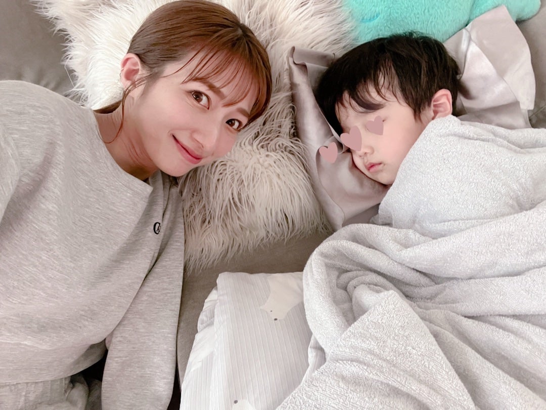 辻希美さんが気持ちよさそうに眠る息子と笑顔で2S😁