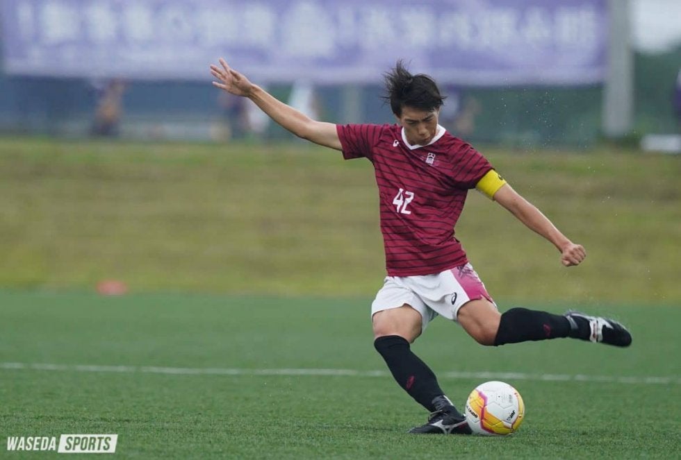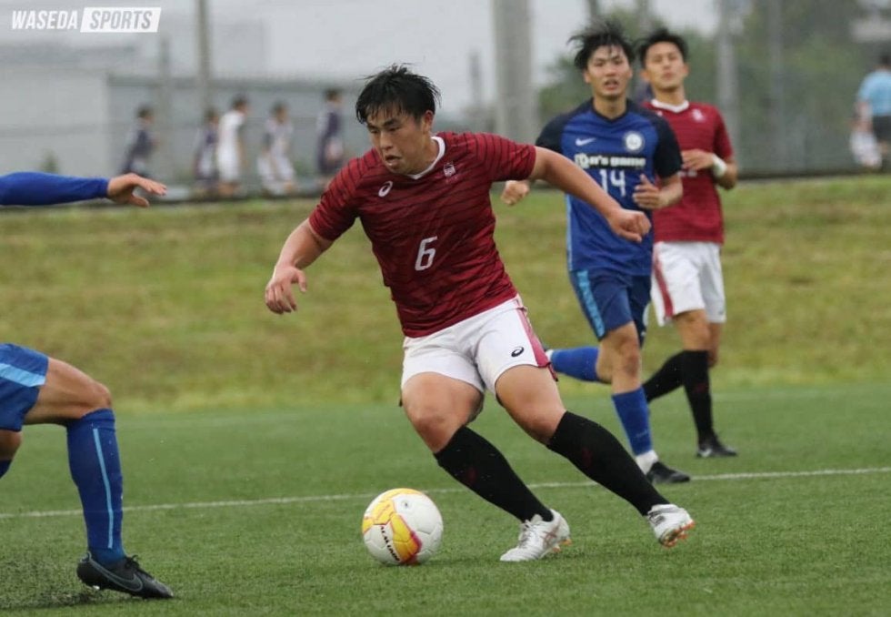 前節の勢いそのままに連勝を目指した早大であったが、序盤から相手に押し込まれる時間が続く。開始早々、DF西尾颯大(スポ4=千葉・流通経大柏)のクリアが相手に渡ると、そのままカウンターを食らう。最後はペナルティエリア内でシュートを打たれるが、これを鈴木がゴールライン上で防ぎ失点は免れる。18分にはバックパスを奪われ、ディフェンスラインの裏に抜け出されたが、DF平瀬大(スポ4=サガン鳥栖U18)の懸命な戻りで何とかコーナーキックへと逃れた。22分にもクリアが中途半端になったところを拾われたが、至近距離からのシュートをGKヒル袈依廉(スポ2=鹿児島城西)が防ぐ。相次いだピンチを切り抜けると、「うまく前まで前進できた」と鈴木が振り返るように、MF西堂久俊(スポ4=千葉・市船橋)や鈴木を起点とした左サイドから、相手陣内へ攻め入る。また、積極的なプレスをかけ、高い位置でボールを奪うシーンも増える。35分、左サイドに入った西堂のクロスからMF平松柚佑(社3=山梨学院)がダイレクトで狙うも、これは枠の上へ外れる。その後は互いに決定機をつくれず0-0のまま前半を折り返した。