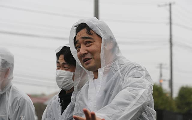 愛馬オマタセシマシタのデビュー戦を応援するために門別競馬場を訪れたジャンポケ斉藤(撮影:田中哲実)