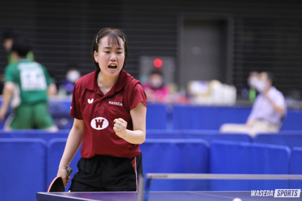 ベスト8には残れなかった黒野葵衣主将(スポ4=東京・武蔵野)、里川奈優(スポ3=高知・明徳義塾)、顧琳婧(スポ2=愛知・桜丘)を含めて4人がランキング入りを果たし、選手層の厚さを示した早大女子。今後に向けてそれぞれが課題を明確にした実りある大会となった。7月に開幕するインカレで結果を残すために、残り3週間でどこまで修正し進化できるか。今大会の収穫を糧に、「チャレンジャーの立場」(杉田)で大舞台に挑む。