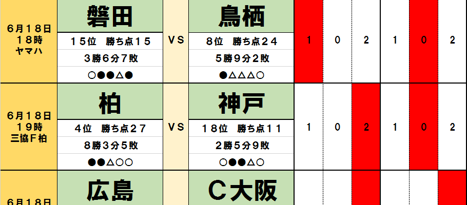 今回のtotoではJ1第17節の9試合とJ2第22節の4試合が対象となっている。過去のデータや直近の様子などから、分析…