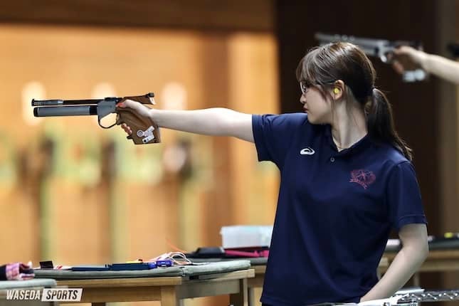 関東学生選手権春季大会が、時折激しい雨が降りしきる長瀞射撃場にて行われた。東日本学生選手権(東日本選手権)から約1カ月、各選手が日々の取り組みを発揮する絶好の舞台となった。早大は、男子総合団体は4位、女子総合団体では5位の成績を収めた。また、個人参加となるエアピストル競技において、佐藤琳(スポ2=東京・成立学園)がファイナル競技に進出。3位入賞となった。