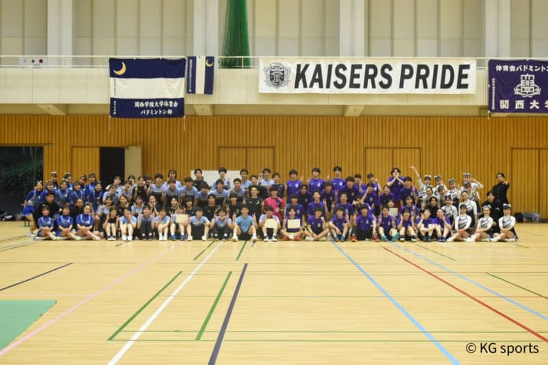 <写真・試合終了後、写真撮影に応じる選手たち>6月18日、関西大学千里山キャンパス中央体育館にて、第45回総合関関戦が行…