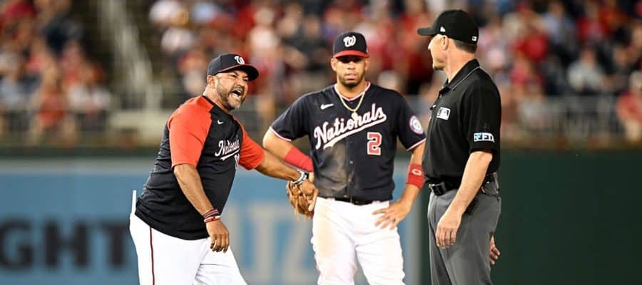 猛抗議するナショナルズのデーブ・マルティネス監督【写真:Getty Images】