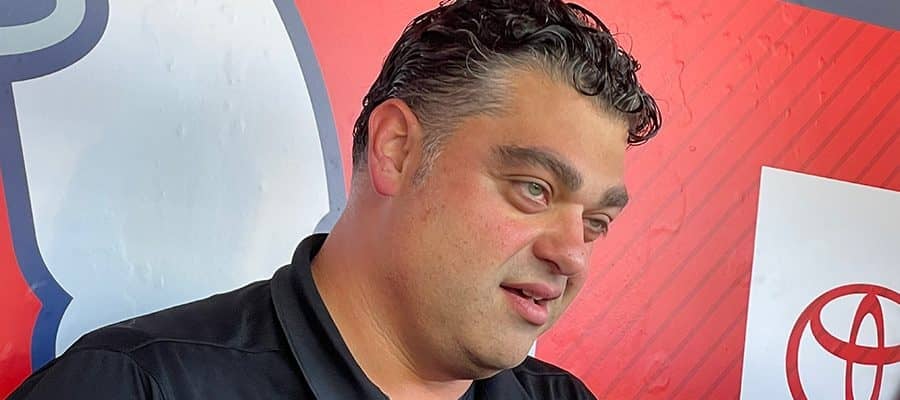 取材に応じたエンゼルスのペリー・ミナシアンGM【写真:盆子原浩二】