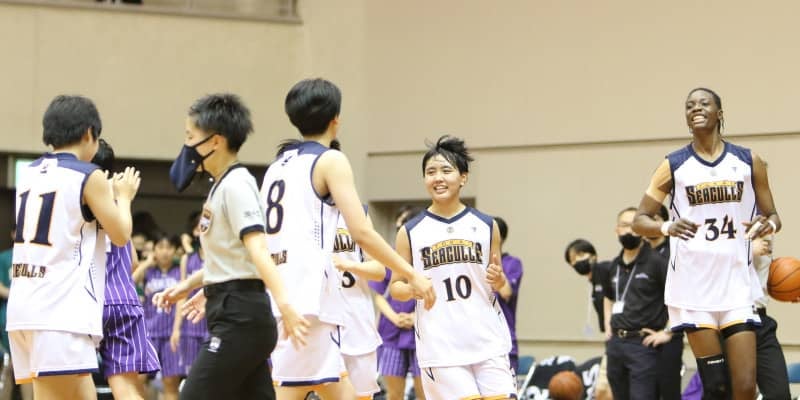 迎えた決勝戦、東海大福岡は第1クォーターから30得点を積み上げて好スタートを切るも、198センチの高さを誇るファール・アミナタ(3年)が前半からファウルドラブルに陥り、3点ビハインドで試合を折り返す。第3クォーター終盤にはアミナタが4つ目のファウルを宣告されたが、この日は2年生ガードの浜口さくらが27得点、シックスマンの赤間静夏(3年)が15得点を挙げる活躍でチームをけん引。最後までもつれる展開の中、2点リード迎えた試合終了残り1分29秒には浜口が貴重な3ポイントシュートを沈めて勝利を大きく手繰り寄せた。