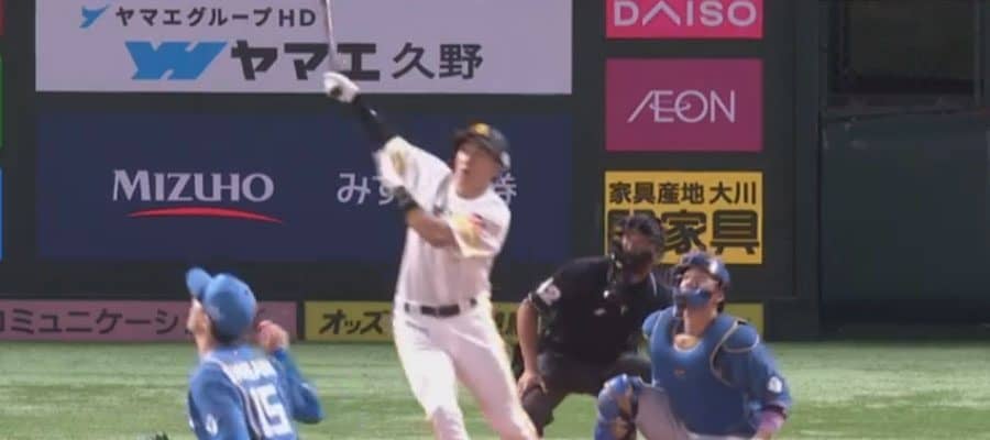 【実際の映像】内角低めをすくい上げて右翼席へ! 鷹柳田の“技あり変態弾”