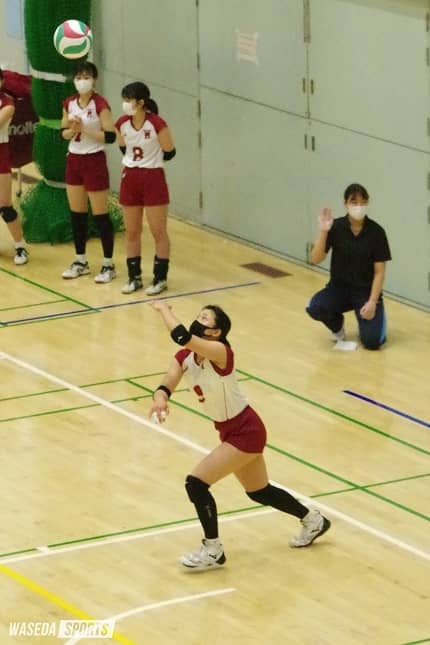 | レフト 中澤恵主将(スポ4=大阪・金蘭会) レフト 柴田羽乃香(商3=東京・お茶の水女大付) センター 山下日和副将(社4=千葉・市船橋) センター 神庭有花(先理4=埼玉・市浦和) ライト 秋重若菜(スポ2=大阪・金蘭会) セッター 南里和(商2=東京・女子学院) リベロ 山﨑葵(社1=岡山・就実) | ||||