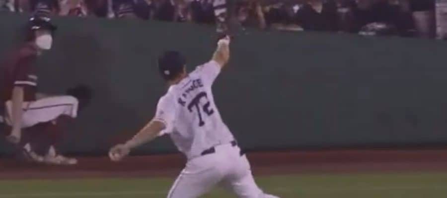 【実際の映像】「さすが元投手!!!!!」強肩を発動し俊足の西川を刺した完璧なバックホーム