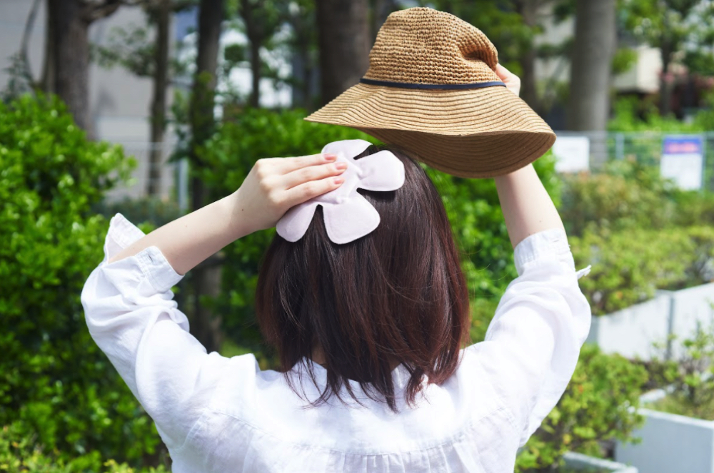 次に、「ビスク ホリデーマーケット ハットピロー」(770円)は、冷やしたハットピローを帽子の中に入れて使用する商品です。やはり、首から上を冷やすと快適さがまったく違いますよね!