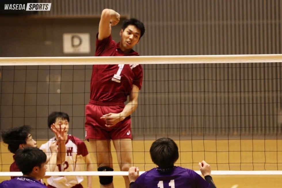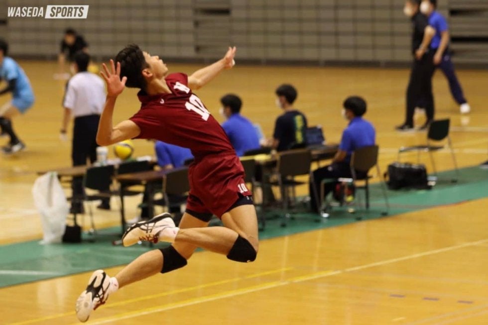 第1セットは今大会課題として挙げられていた試合の入りから、攻撃的な姿勢でブレイクする。水町泰杜(スポ3=熊本・鎮西)のサービスエースや山田大貴(スポ3=静岡・清水桜が丘)のバックアタックなどで得点を挙げ、リードを広げた。また岩本大吾主将(スポ4=兵庫・市立尼崎)、伊藤吏玖(スポ3=東京・駿台学園)らミドルのクイックも決まり、早大らしいバレーを展開。勢いに乗った早大は第1セットを危なげなく先取した。第2セットでも勢いは衰えることなく、センター線を中心として攻撃を展開し、25-21でこのセットも奪った。