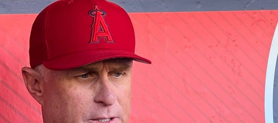 試合前の取材に応じたエンゼルスのフィル・ネビン監督代行【写真:盆子原浩二】