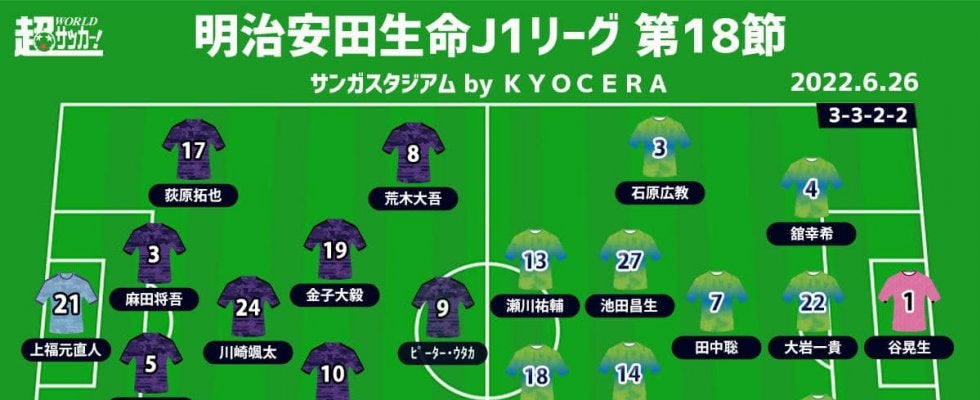 【明治安田生命J1リーグ第18節】 2022年6月26日(日) 18:30キックオフ 京都サンガF.C.(9位/20pt…
