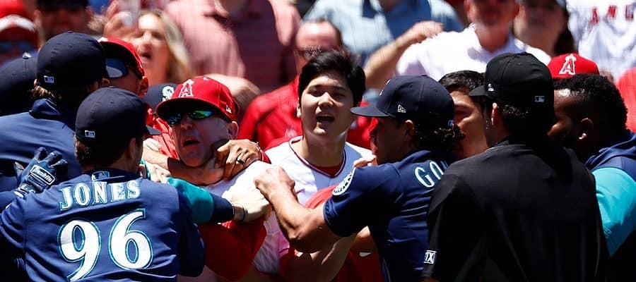 【MLB】大谷翔平の出場試合で大乱闘 第3打席は弾丸172キロ右直、右翼手落とすもアウトに | 野球